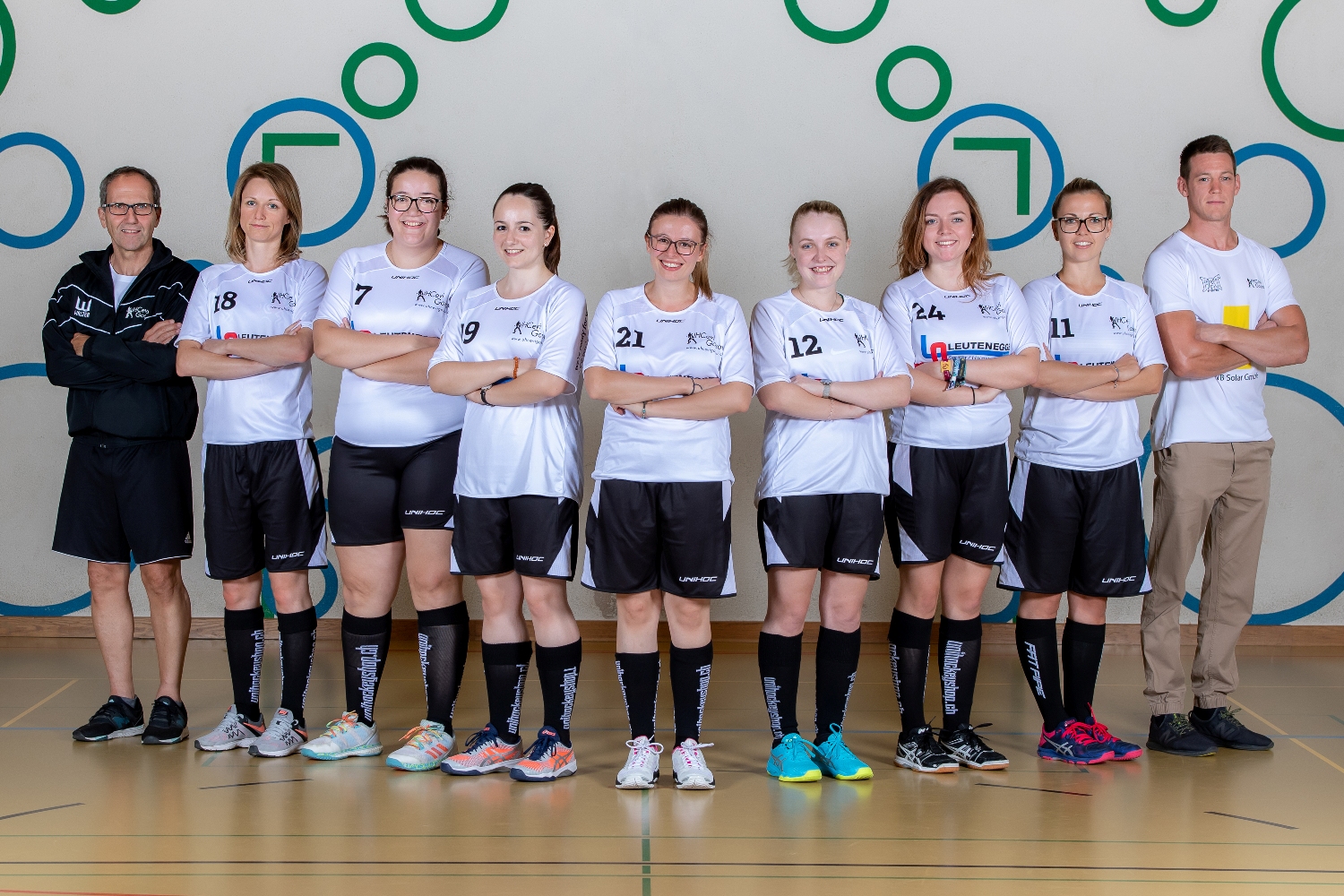 V.l.n.r. Bruno Fierz, Trainer, Tanja Herrmann #18, Alina Bucher #7, Nadine Wildhaber #19, Liv Welter #21, Jennifer Bettschart #12, Riccarda Kistler #24, Joëlle Fierz #11, Dimitri Riedle Assistenztrainer;