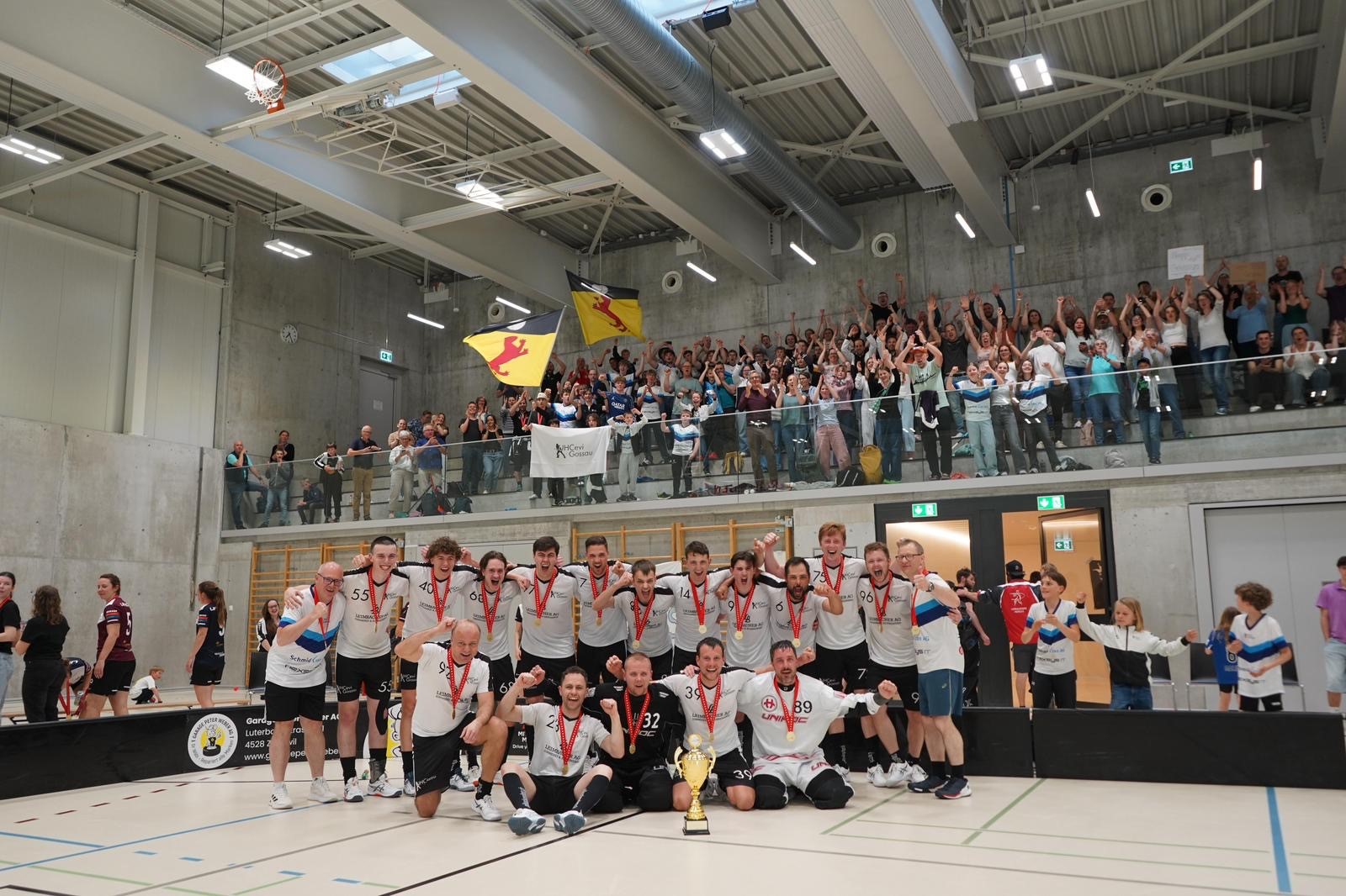 Gäbe es kein Tor in dieser Zeit würde ein Penaltyschiessen folgen. Doch die Gossauer wollten dieses Spiel unbedingt gewinnen. Sie spielten mit zwei Linien und suchten den Weg zum Tor. Oekingen hatte in dieser Phase mehr Ballzeiten, aber sie suchten das Tor nicht konsequent. Es lief bereits die 5. Minute der Nachspielzeit als Jason Abbühl ein Schuss neben das Tor setzte. Doch Aaron Abbühl schaltete am schnellsten, schnappte sich den Ball, lief um das Tor und scheiterte mit einem Buebetrickli knapp an Haab. Der Ball jedoch lag frei vor dem Oekinger Tor und es war einmal mehr Jason Abbühl, der blitzschnell reagierte und die Gossauer zum 11. Meistertitel schoss! (Video) Der Jubel kannte keine Grenzen mehr, es flog alles möglich von den Rängen.