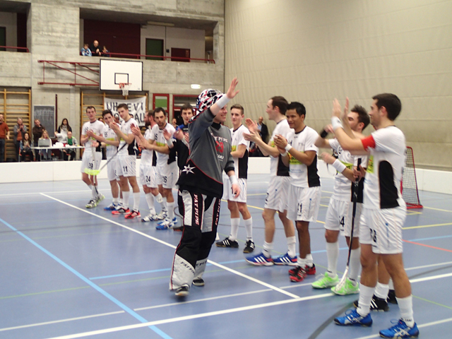 Nun aber alles der Reihe nach. Kurz nach der Pause zeigte Keller seine ganze Klasse, als er mit dem Rücken zum Tor mit einer kurzen Bewegung sich seines Gegenspielers entledigte und den Ball in den «Engel» versenkte. Kurz darauf erhöhte Wintsch auf 7:4, auch er war einer der überragenden Akteuere auf Seiten der Gossauer in dieser Serie. Diese beiden Treffer gaben den Gossauern viel Selbstvertrauen und dies konnte man deutlich erkennen, als Walther kurz darauf auf 8:4 erhöhte. Als dann D`Hooghe mit dem 9:4 Showtime ansagte und sich im Stile von Ronaldo von seinen Teamkameraden feiern liess, hatte niemand mehr Bedenken, dass man dieses Spiel noch verlieren könnte. Denn die «Blanchos» gaben sich nicht zufrieden und L. Widmer erzielte noch einen Emptynetter, ehe Keller sich noch einmal feiern lassen durfte. Den Schlusspunkt setzte dann wieder d'Hooghe in Überzahl nach einem Zuspiel von Vollenweider.